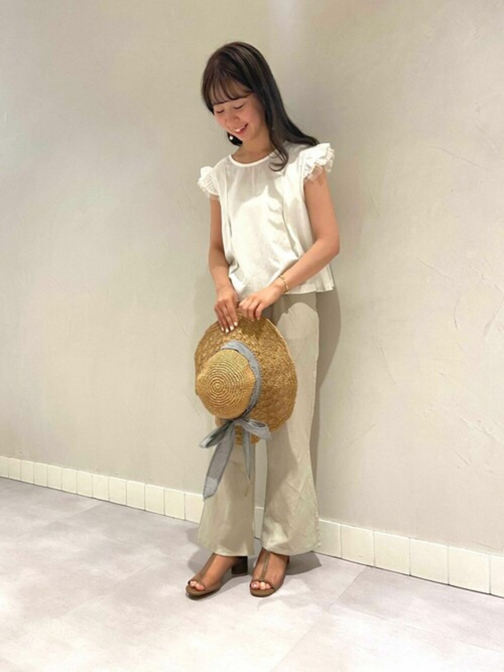 新作のブラウスとフレアパンツを使用したコーディネート♪ 欲張りな万能ブラウス♡ ・Tシャツのようなリラックスした気分で着用 ・ガーリーさも味わえる ・バストから広がるタックが体のラインをきれいに見せます ・肩についたフリルはチュールを重ねていて、さりげなく肩回りもカバー ・ウエストインでもアウトでも着用できる丈感で合わせやすい スタイルアップが叶うハイウエストパンツ♡ ・ほどよいフレアシルエットが脚のラインをきれいに見せます ・ひざの位置を高めにデザインしているので美脚効果◎ ・薄手のさらっとした生地感で夏も涼しく着用可 ・トップスはインしたスタイリングもオススメ flowerルミネ池袋店staff matsutera instagram: @flower_matsutera