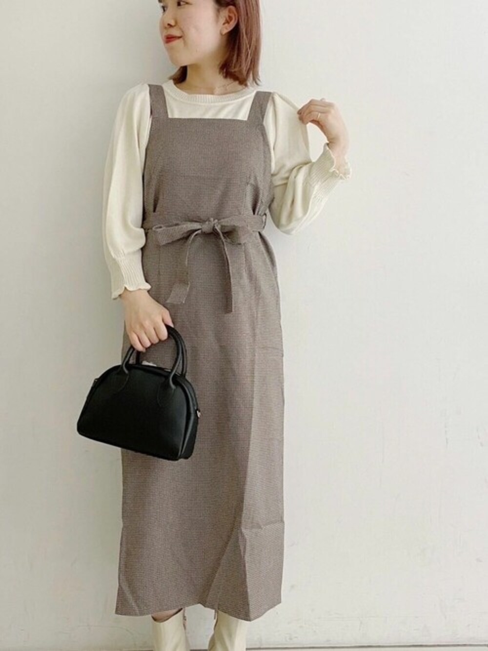 check apron onepiece すっきりとしたIラインシルエットが フェミニンな印象のエプロンワンピース! タイトなシルエットですが後ろにスリットが入っているので動きやすく、 少し脚がのぞくので抜け感も演出してくれます! ストラップは内側のボタンで4段階まで長さの調節が可能❤︎ *instagram* flower official @flower_web flower lucua @flower_lucua