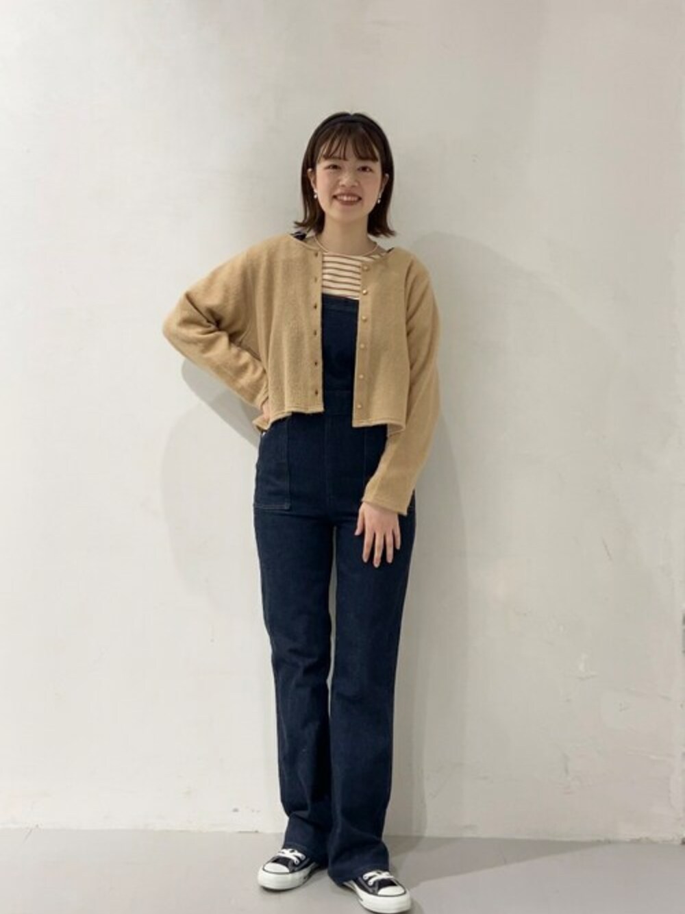 creamy cardigan 柔らかいカラーとふわふわのタッチ♡ 今の時期からこれからの季節に向けて長くお使い頂けるカーディガン♪ サロペットを合わせてみました♪ *instagram* flower official @flower_web
