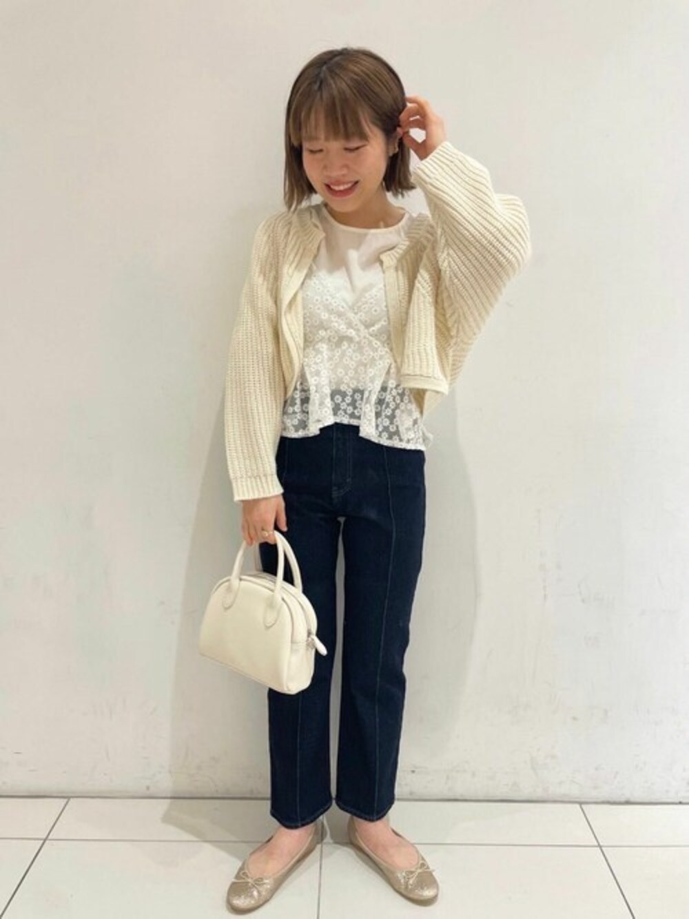 店頭でもとっても 人気なこちらのスタイリング❤︎ 異素材なバランス感がとっても可愛いです!! ・mix color cardigan ・simple flare blouse ・beautiful bloom bustier ・pintuck denim pants *instagram* flower official @flower_web flower osaka @flower_lucua