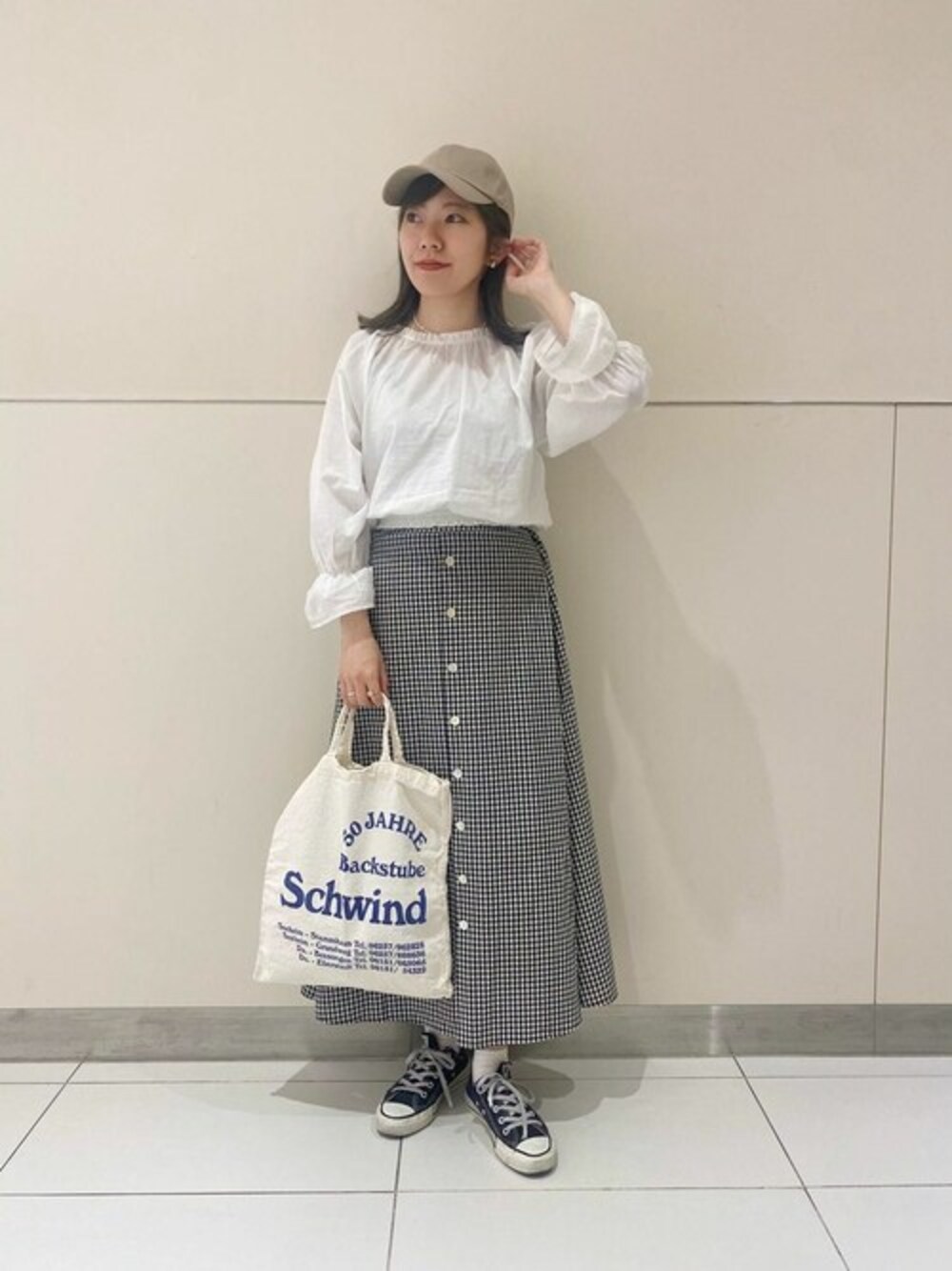 flower(flower )のスカート「スプリンギーチェックスカート」を使ったコーディネート