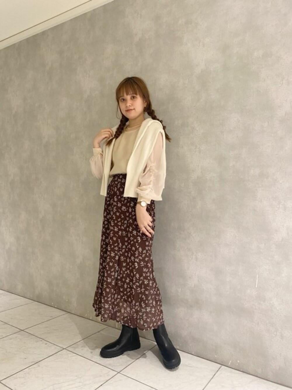 ブラウンのスカートで秋っぽく♡ トレンドのボリュームブーツで大人っぽさもプラス♡ *instagram* flower official @flower_web flower osaka @flower_lucua