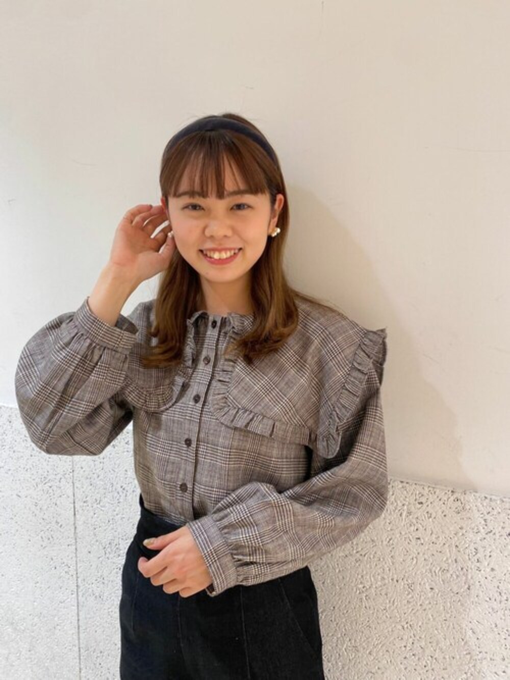 flower(flower )のシャツ/ブラウス「チェックフリルカラーブラウス」を使ったコーディネート