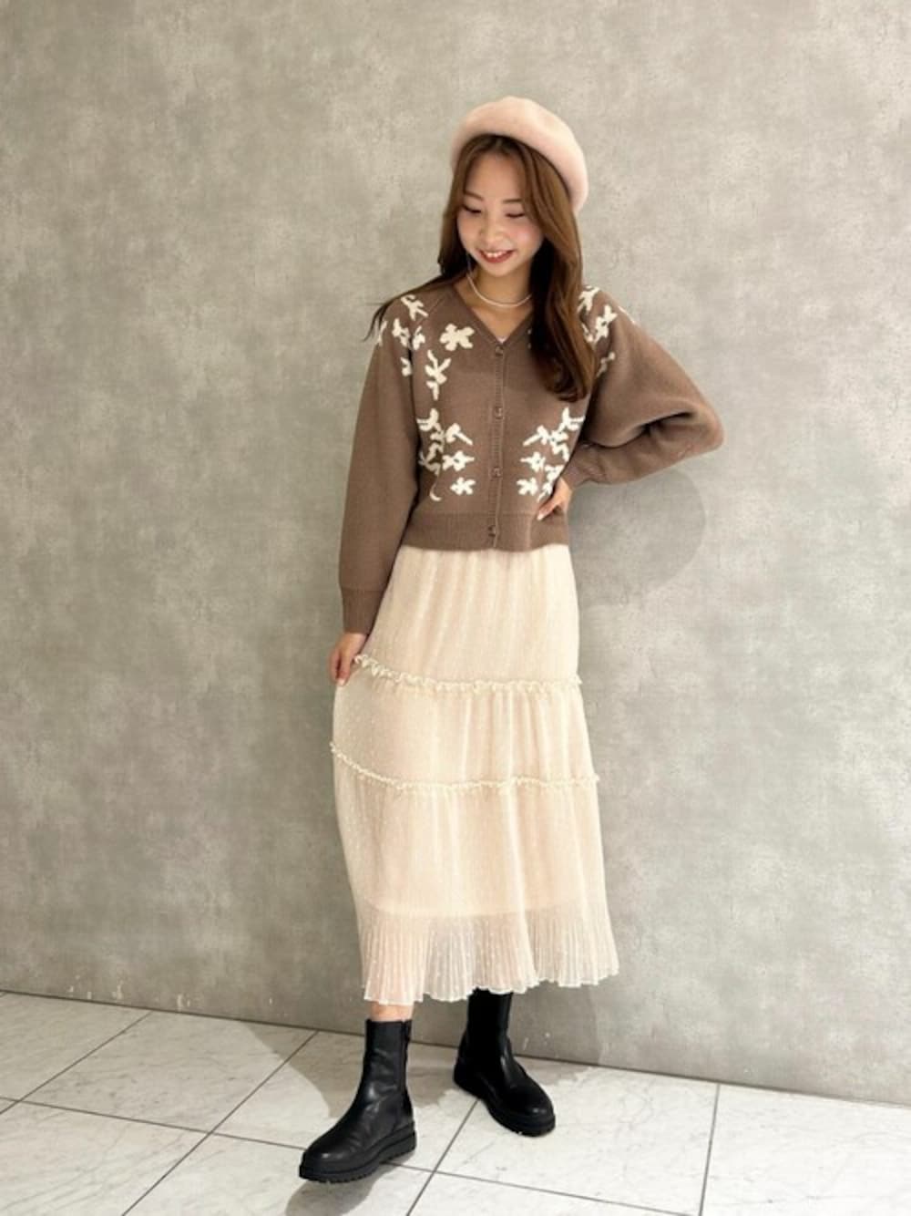 秋らしいベレー帽コーデ…♡ 風に揺れるふわっとしたティアードスカートが 秋のおでかけにぴったりです ⚘ ⚘ ⚘ *instagram* flower official @flower_web flower tennojimio @flower_tennojimio
