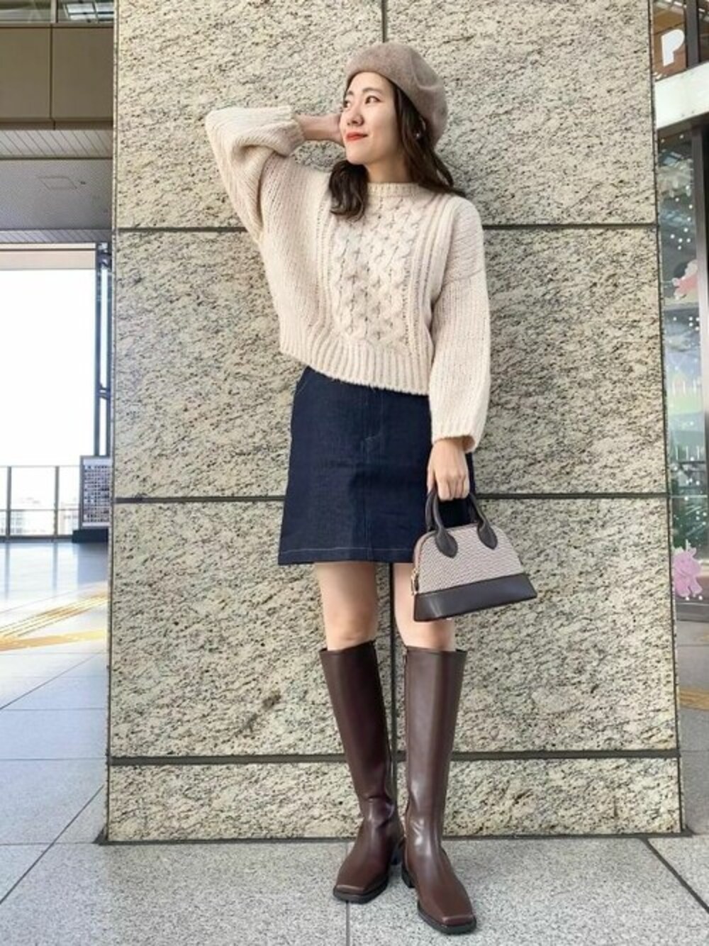 デニムスカートロングブーツの組み合わせがかわいい♡ 固めの生地感がきれいなシルエットを キープしてくれますよ☺ *instagram* flower official @flower_web flower osaka @flower_lucua