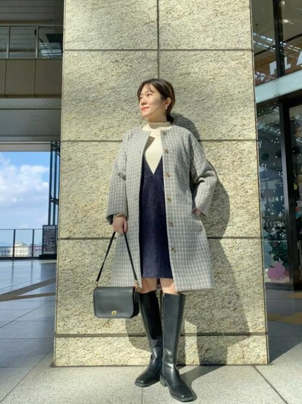 flower(flower )のステンカラーコート「マイルドチェックコート」を使ったコーディネート
