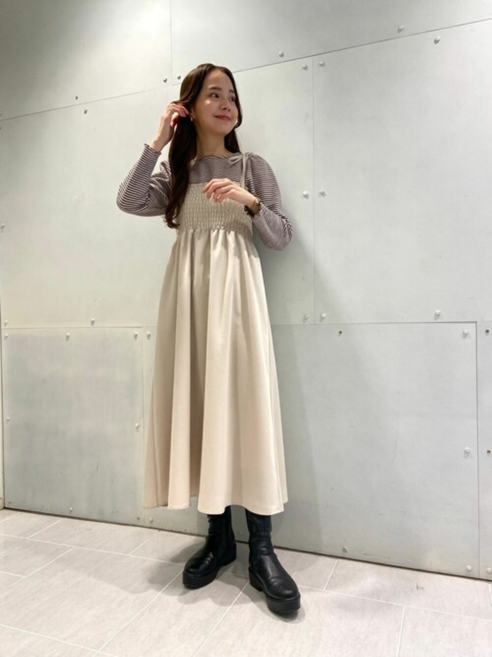 flower(flower )のTシャツ/カットソー「キャラメルボーダートップ」を使ったコーディネート
