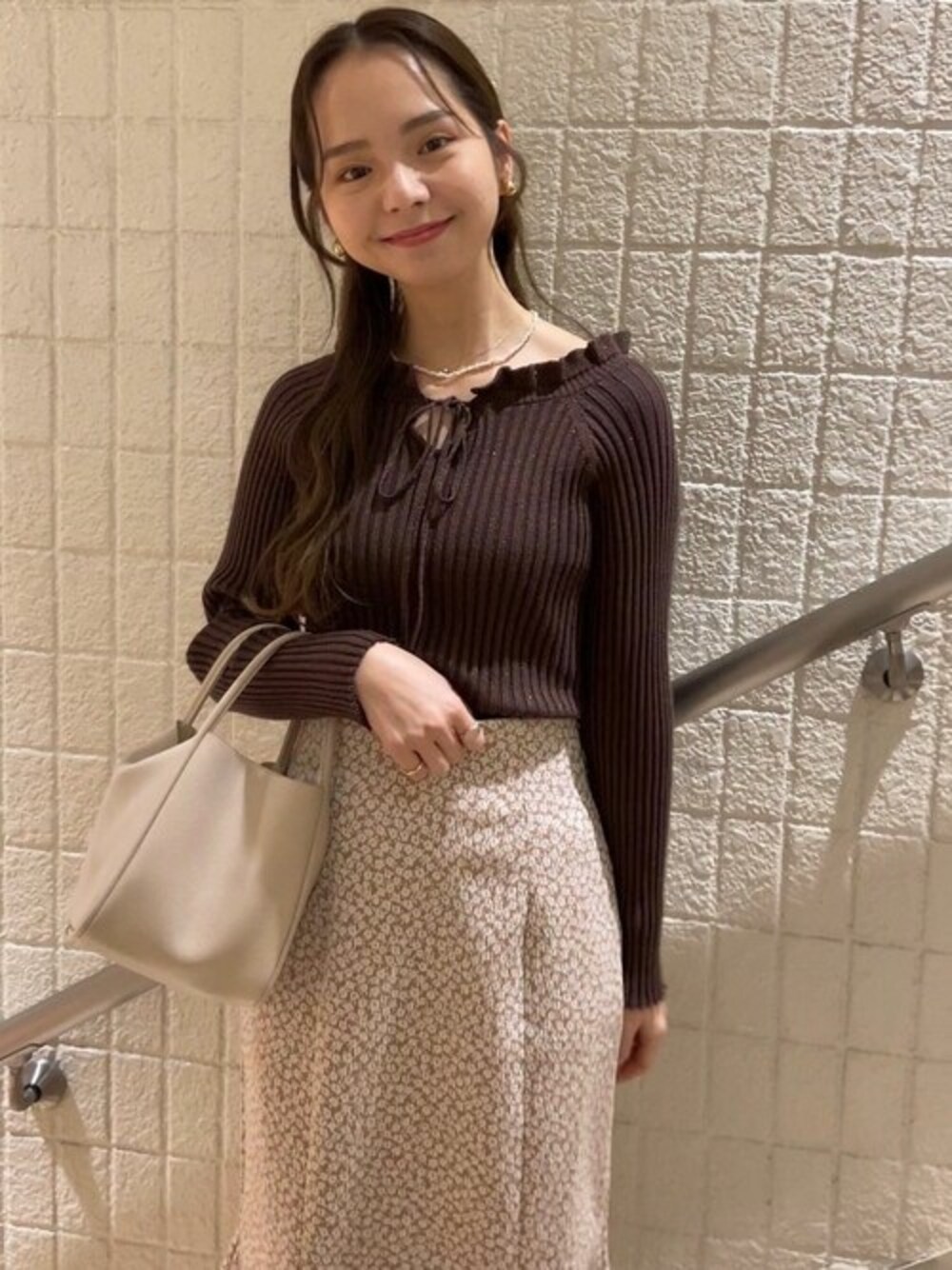 こっくりブラウンのラメ糸ニット☕ リボンを後ろにして着ると、 スクエアネックに☻ *instagram* flower official @flower_web flower shinjuku @flower_shinjuku