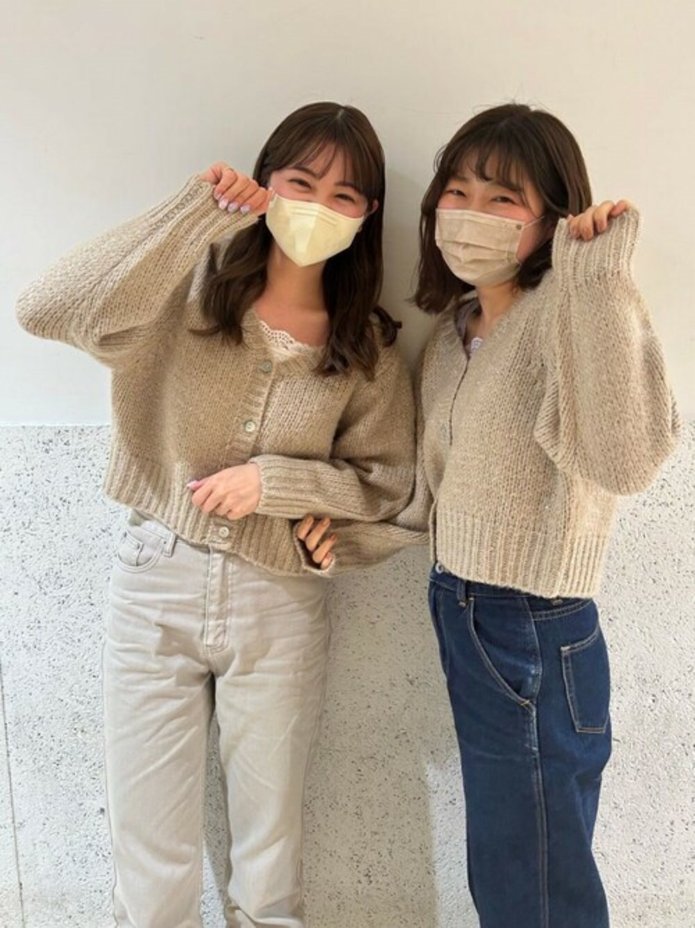 ショート丈のニットカーディガン...☕ 色違いで合わせてリンクコーデにも♪ sunny flare pants Mサイズ着用してます☻! *instagram* flower official @flower_web flower ikebukuro @flower_ikebukuro