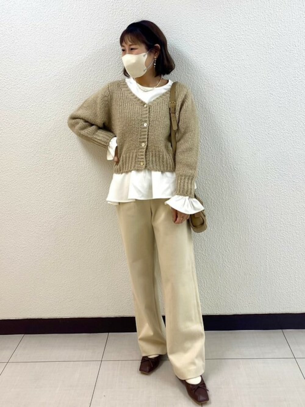 ベージュでまとめたコーデ 𓈒 𓏸 𓐍 ふんわりとした色味のベージュコーデを ホワイトのブラウスで引き締めて ☺︎♩ *instagram* flower official @flower_web flower yokohama @flower_yokohama