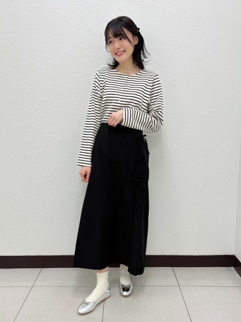 スカートのさりげないリボンが 程よいガーリーさをプラスしてくれます ﻌﻌﻌꔫ 裾に向かって広がるシルエットなので 歩きやすいところもうれしい ☻.∘ *instagram* flower official @flower_web flower yokohama @flower_yokohama