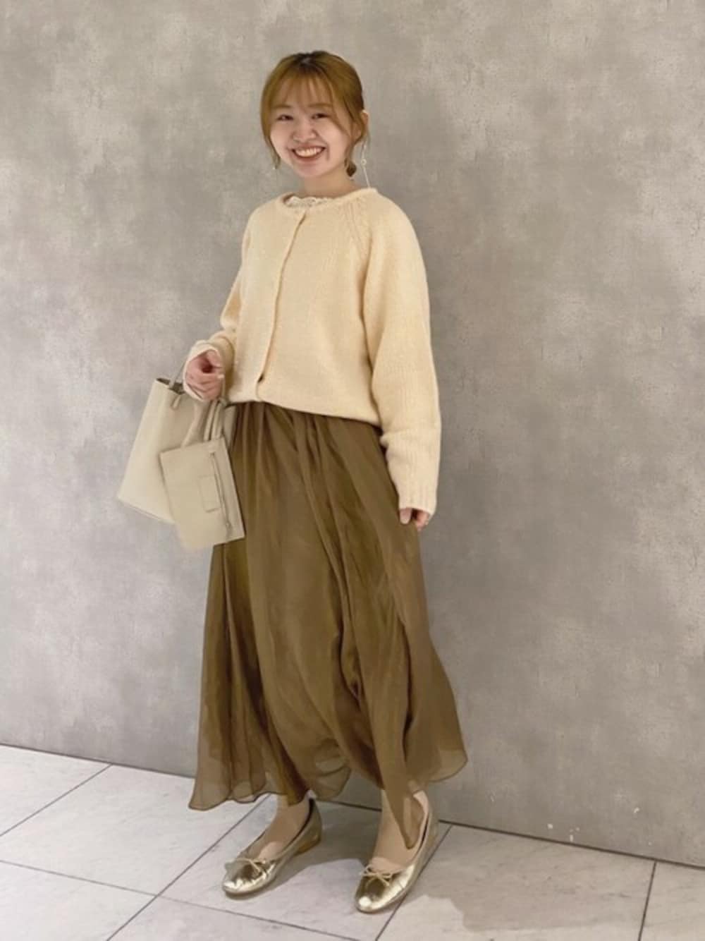 カフェラテコーデ 𓂃☕.∘ 柔らかい色味のニットカーディガン ⚘ ころんとしたシルエットでバランスが取りやすく 何にでも合わせやすいアイテムです ☺︎! *instagram* flower official @flower_web flower tennojimio @flower_tennojimio