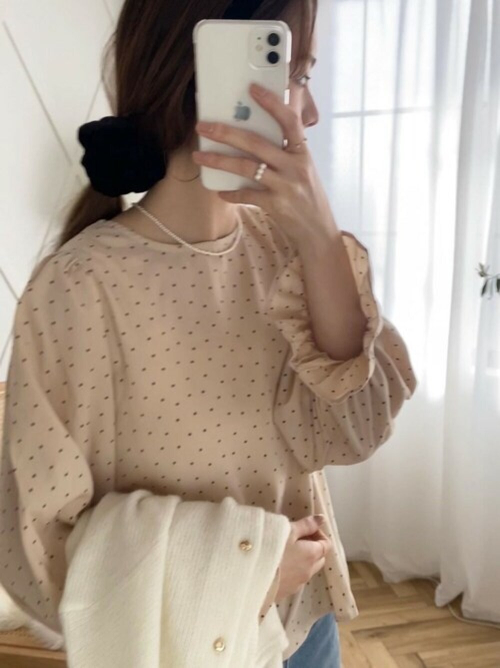 こちらも人気の simple dot balloon blouse ꔛ♡ 控えめなドットと 落ち着いた色味がかわいい .∘ ブラックもベージュも どちらも合わせやすいです☺︎ *instagram* flower official @flower_web flower shinjuku @flower_shinjuku