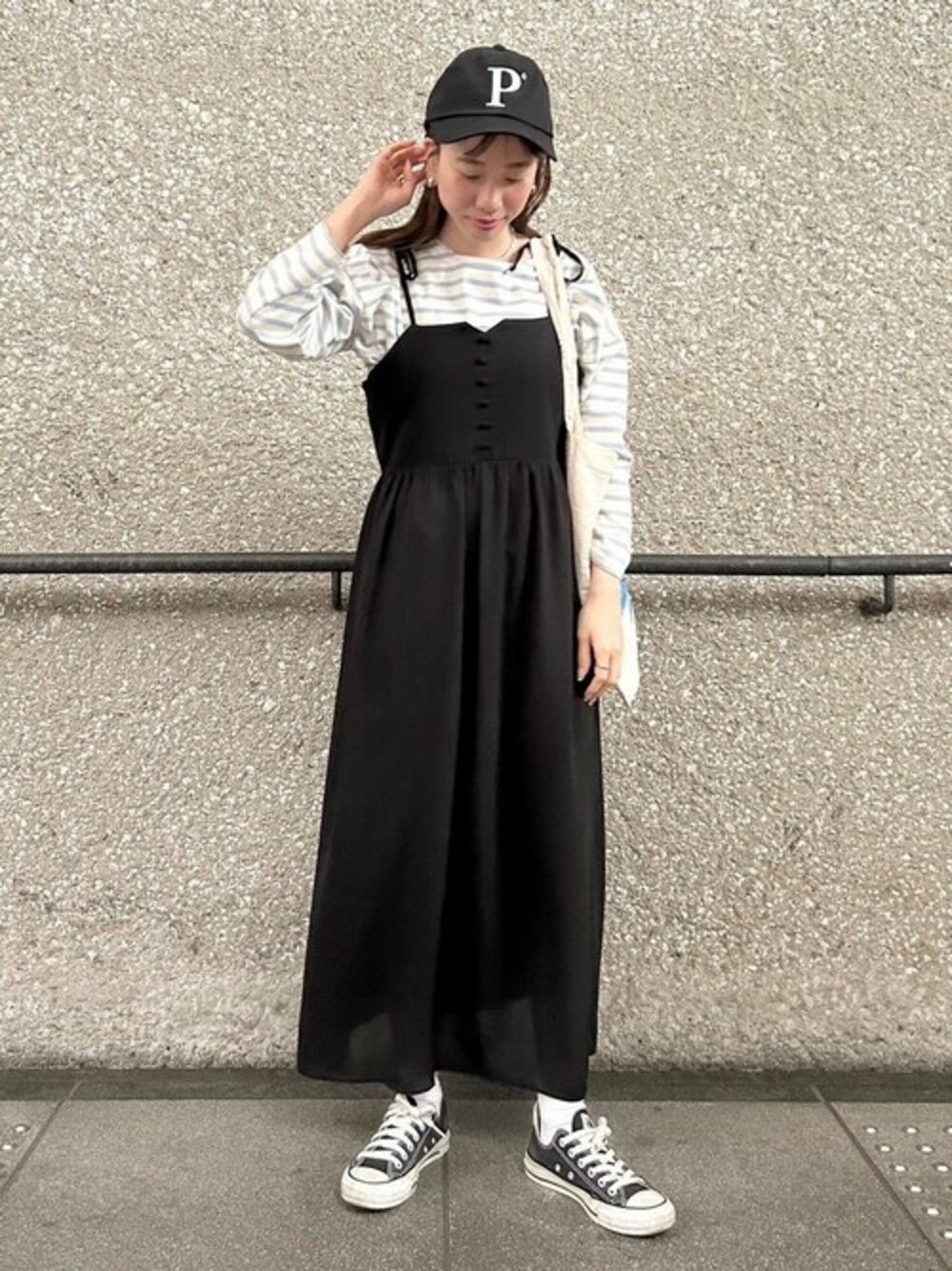 フェミニンな印象のキャミワンピに カジュアル小物を合わせて ꔛ♡ baby blueのボーダートップが コーデのポイントに ☻ˎˊ- *instagram* flower official @flower_web flower osaka @flower_lucua