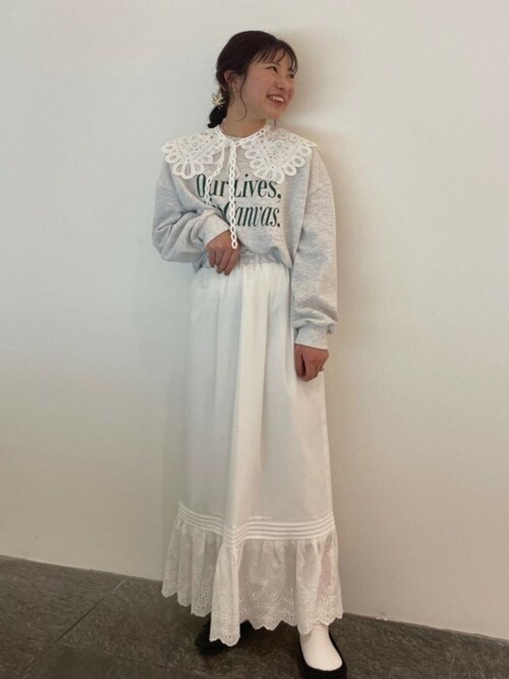 カジュアルな雰囲気のスウェットに レースカラーを合わせて ୨୧ *instagram* flower official    @flower_web flower osaka    @flower_lucua