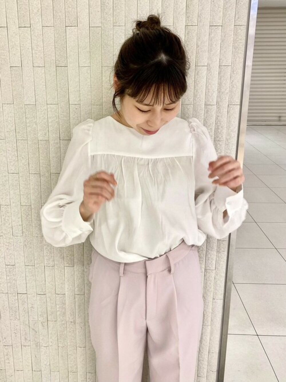 ୨୧ ⋯ ribbon puff blouse ⋯ ୨୧ 胸元の切り替えが目線を上げてくれるので スタイルアップした印象に .∘ *instagram* flower official @flower_web flower yokohama @flower_yokohama