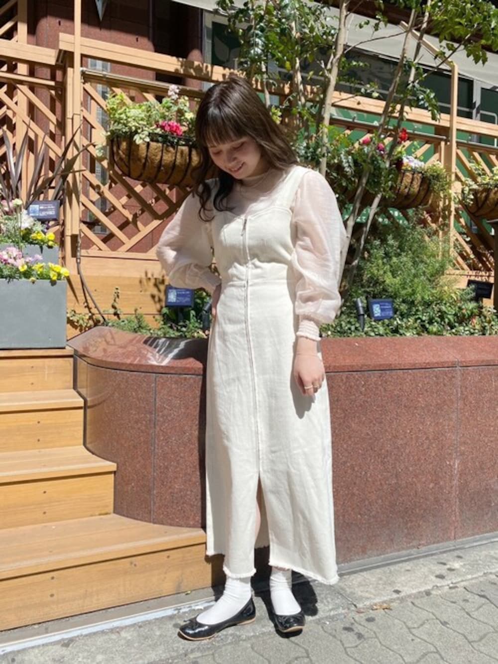 すっきりとしたシルエットの ジャンパースカート ⸜❤︎⸝ ふわっとエアリーなブラウスを合わせて 𓂃⚑ *instagram* flower official @flower_web flower tennojimio @flower_tennojimio