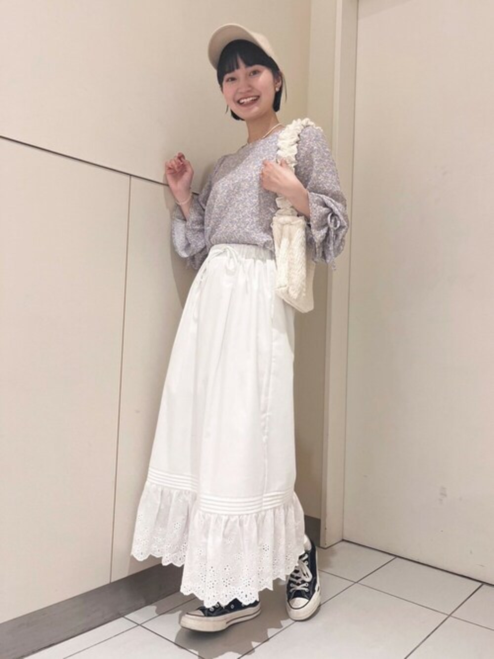 cotton lace skirt × sneakers 👟 ̖́- カジュアルな抜け感がかわいい ☺︎ *instagram* flower official @flower_web flower osaka @flower_lucua