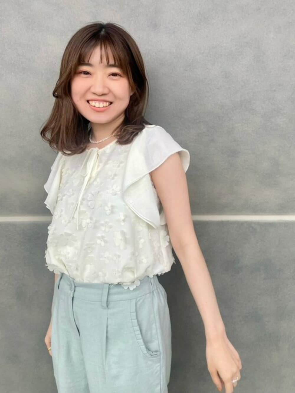 ワントーンだけど、花びらがいっぱいのったシフォン生地のブラウス。 デザイン性もあるのに、 着映えするのでテンション上がります♩ カラーパンツを合わせると 色味が感じられるのでおすすめです☺︎ ⚘ instagram ⚘ flower official @flower_web flower yokohama @flower_yokohama