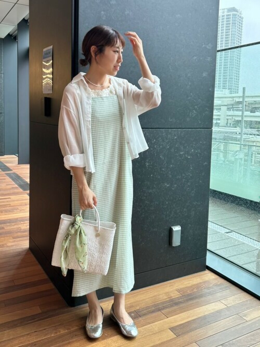flower(flower )のワンピース「スレンダーチェックワンピース」を使ったコーディネート