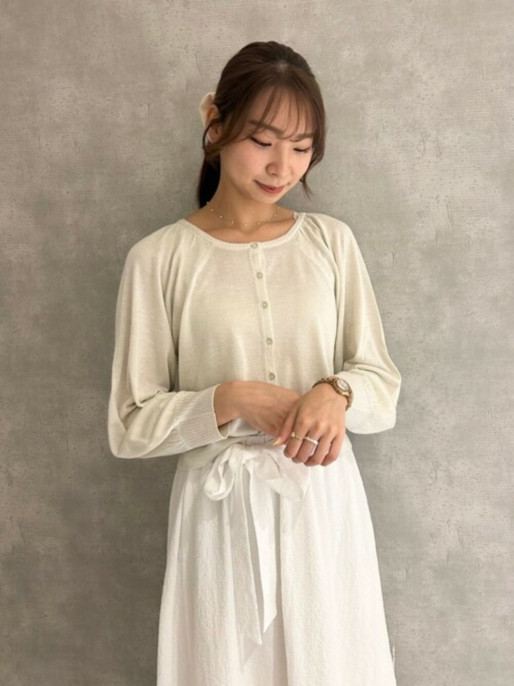 flower(flower )のカーディガン/ボレロ「スパークルシアーニット」を使ったコーディネート