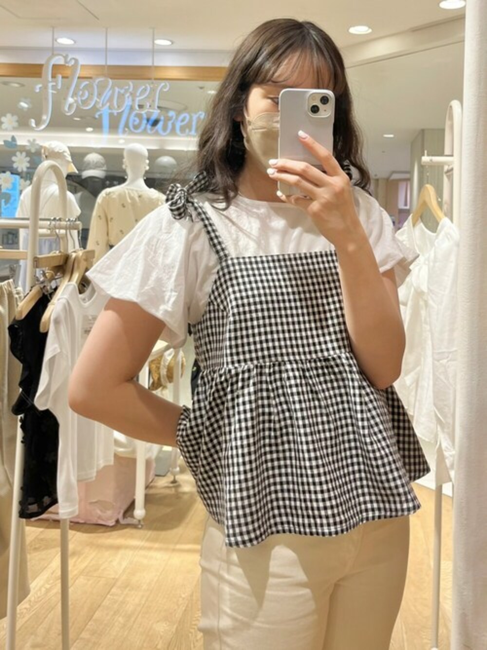 flower(flower )のキャミソール「プレイフルチェックビスチェ」を使ったコーディネート