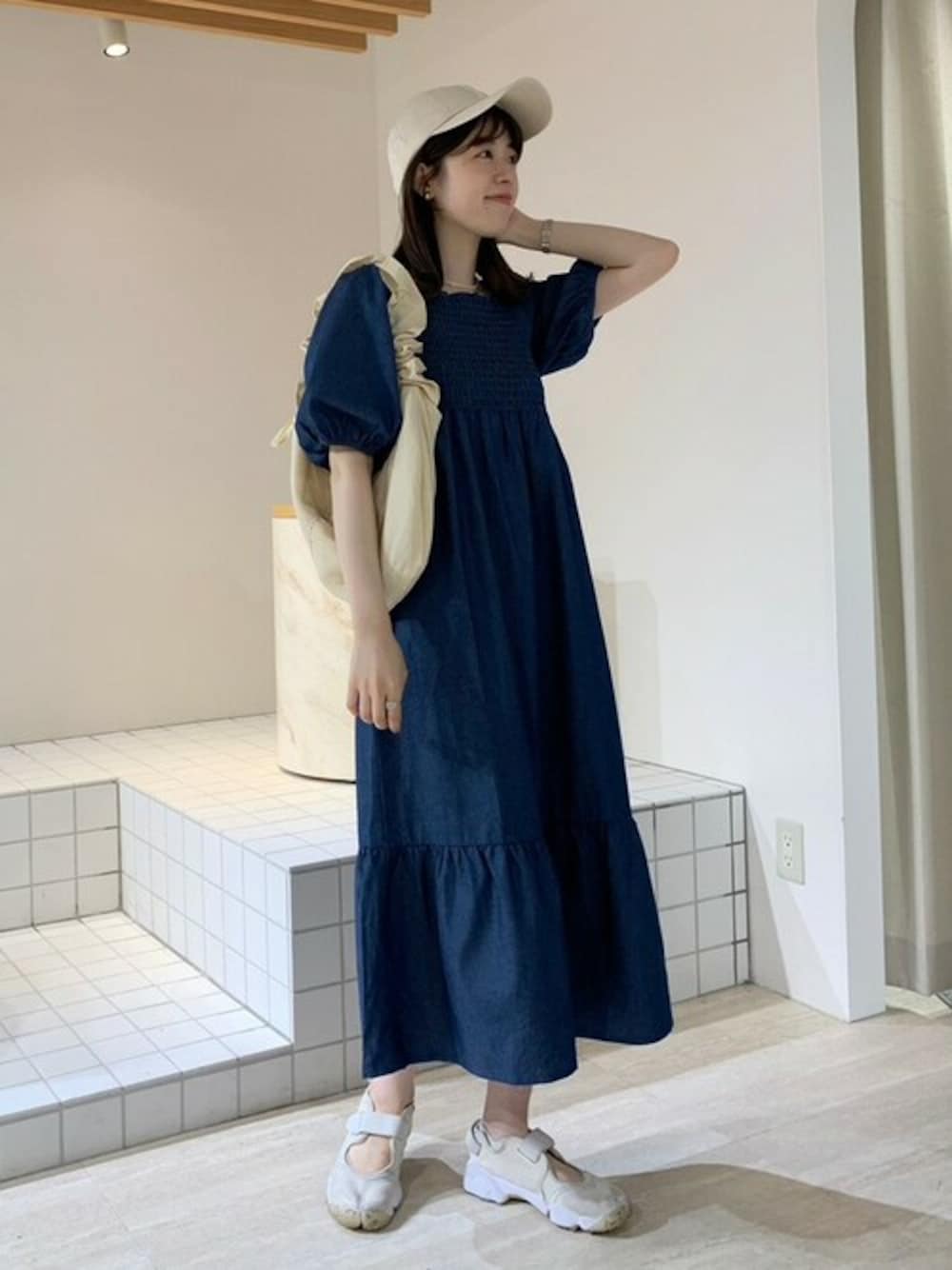 flower(flower )のワンピース「シャーリングデニムワンピース」を使ったコーディネート