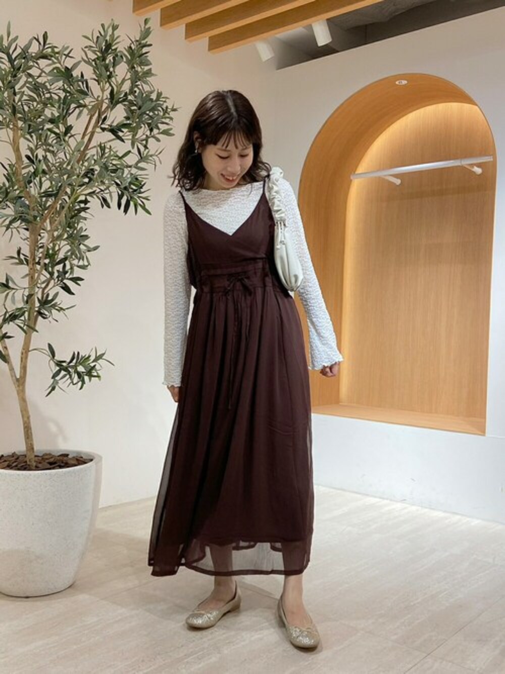 flower(flower )のワンピース「ウェービーシアーワンピース」を使ったコーディネート