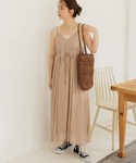 ベージュ系のワンピースを着用したレディースの夏コーディネートの1枚目の写真