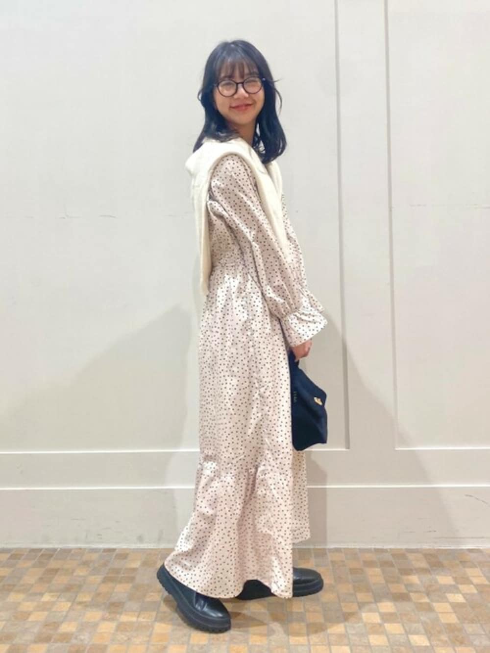 flower(flower )のワンピース「クラシックドットワンピース」を使ったコーディネート