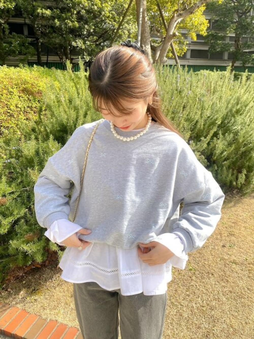 flower(flower )のスウェット「ハピネスイーエムビースウェット」を使ったコーディネート