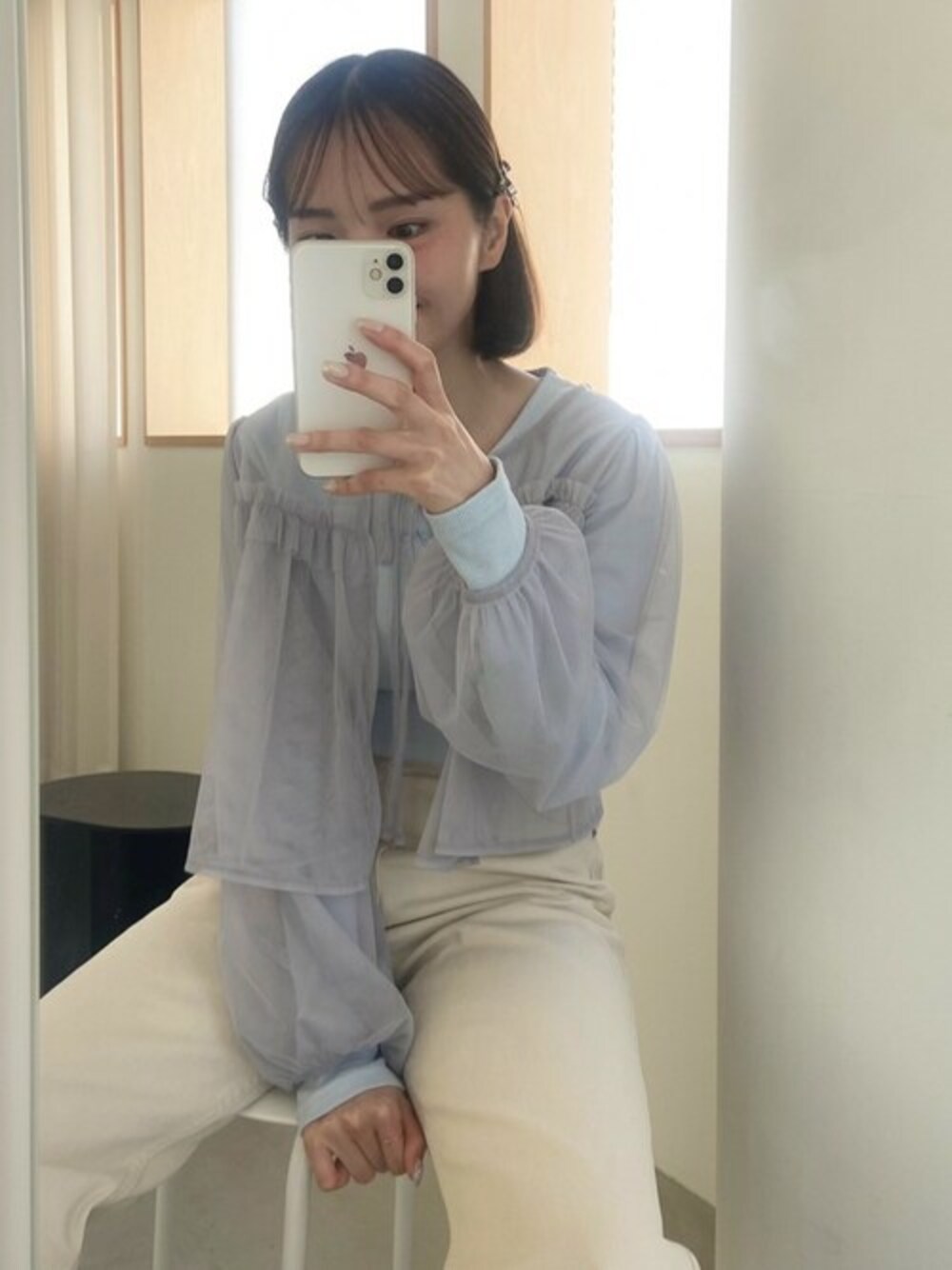 ⚘ パーソナルカラー : Autumn ⚘ 骨格 : Wave -- frill tulle blouse -- ⚑ サイズ感 肩周りにボリュームはないですが 袖にかけてボリュームがあります。 肩周りはすっきり、袖にかけて ポワンとボリューム感のでるシルエットが可愛いです! 短丈なのでバランスがとりやすく スタイルアップして見えました♩ ⚑ 着用感 チュールなんですがフリルは 胸元部分だけなので意外と甘すぎないです! チュールのカーディガンでインナーに カットソーやTsを合わせてバランス感を楽しんでいただけます。 ⚘ instagram ⚘ flower official @flower_web flower shinjuku @flower_shinjuku