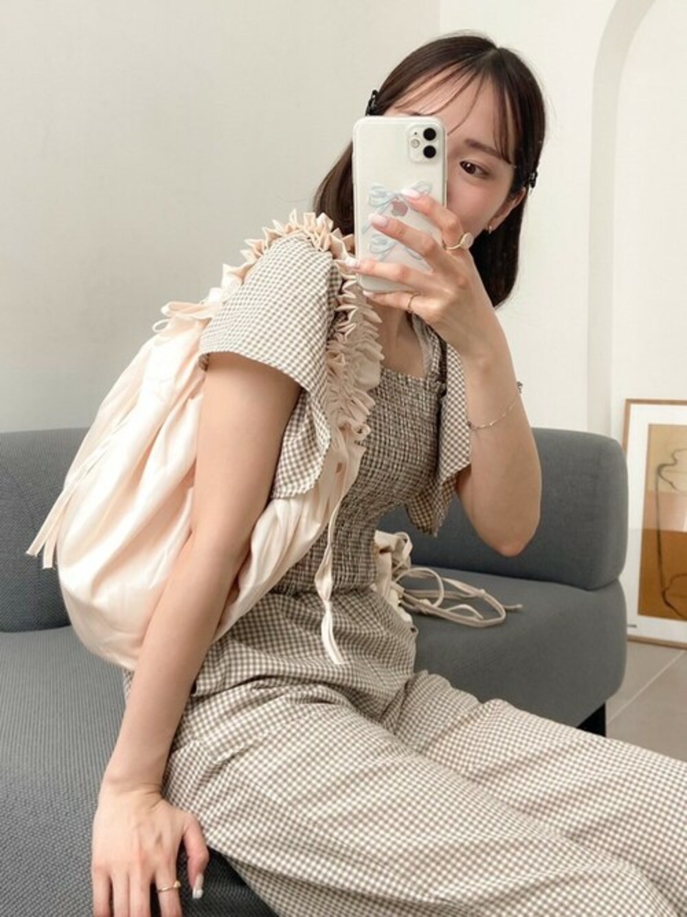 flower(flower )のショルダーバッグ「サテンシャーリングバッグ」を使ったコーディネート
