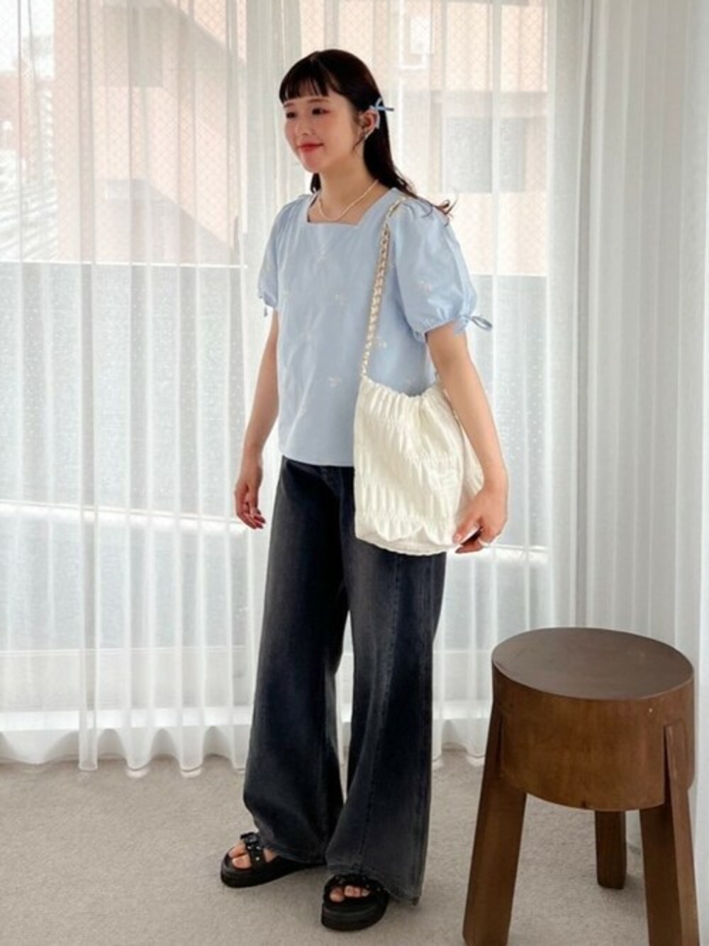 flower(flower )のデニムパンツ「スイッチングバギーパンツ」を使ったコーディネート