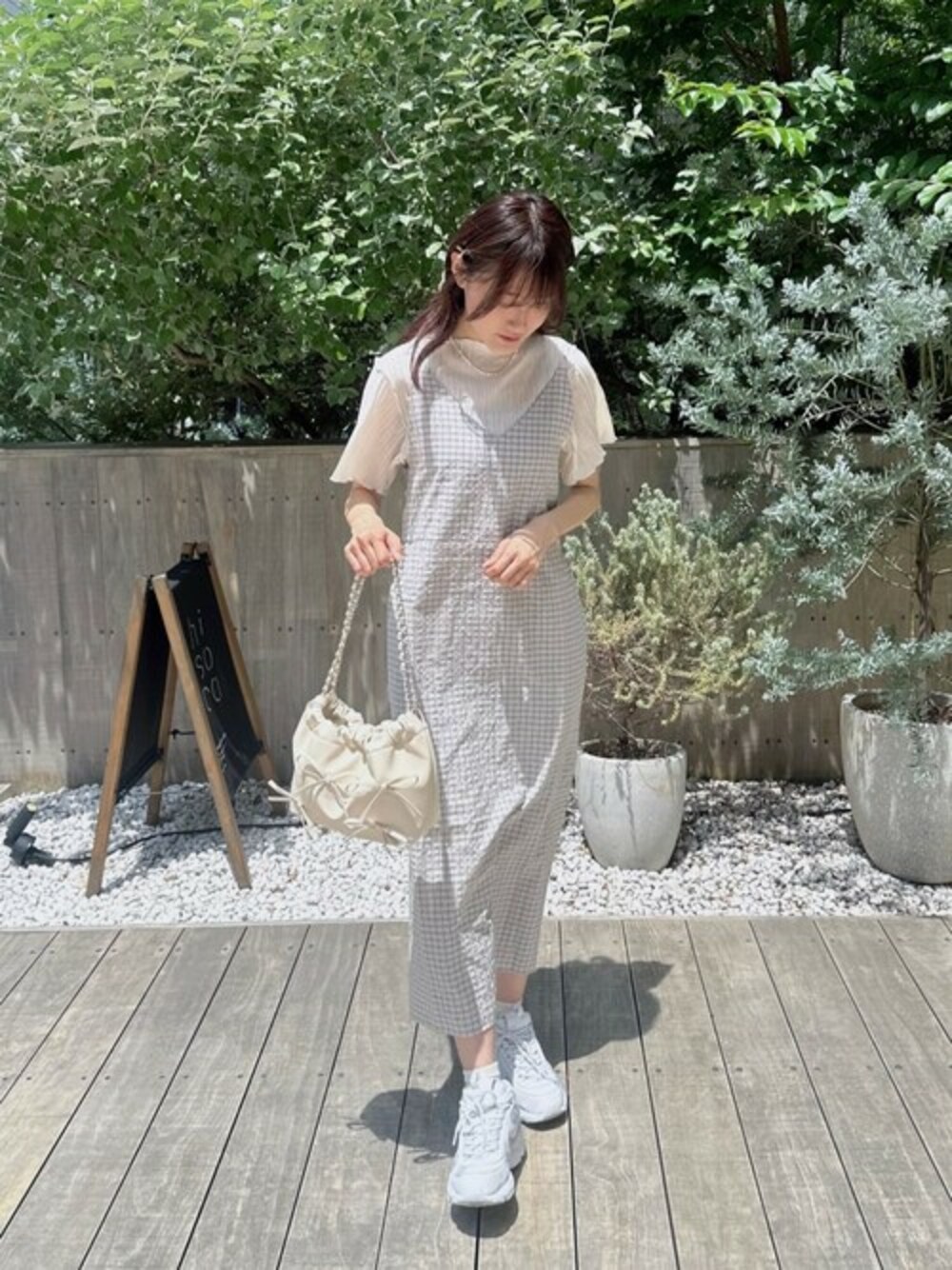 flower(flower )のワンピース「ブリージーチェックワンピース」を使ったコーディネート