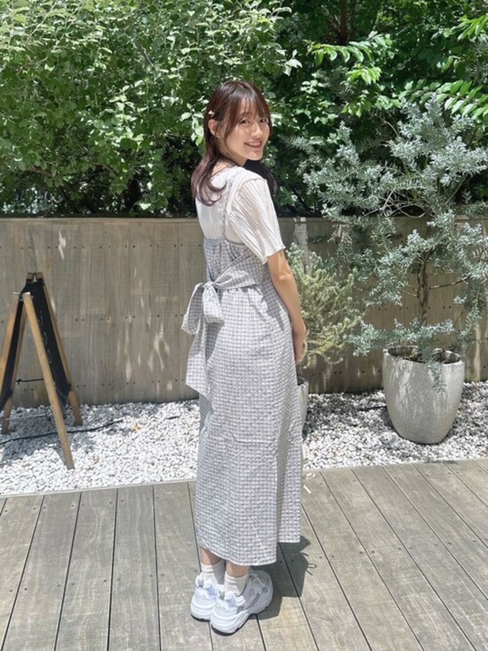 flower(flower )のワンピース「ブリージーチェックワンピース」を使ったコーディネート