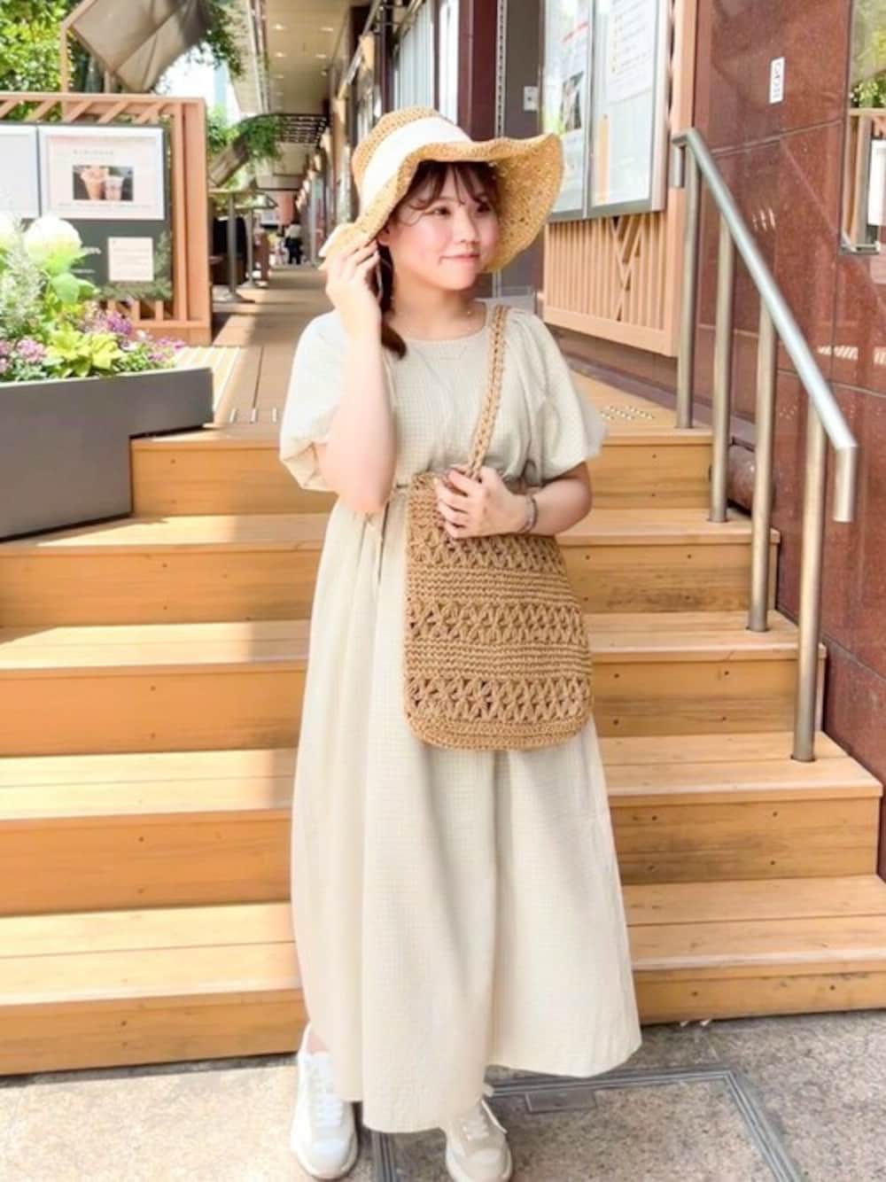 flower(flower )のワンピース「チェックパフワンピース」を使ったコーディネート