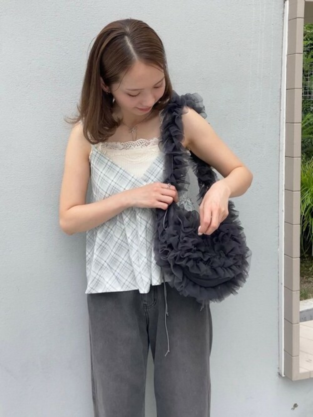flower(flower )のキャミソール「シルキーチェックビスチェ」を使ったコーディネート