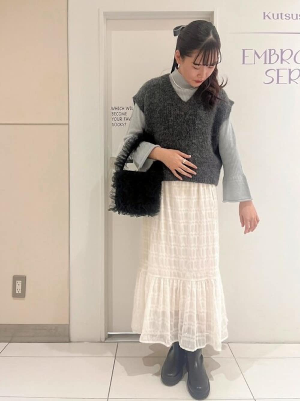 flower(flower )のベスト「エニーフラッフベスト」を使ったコーディネート