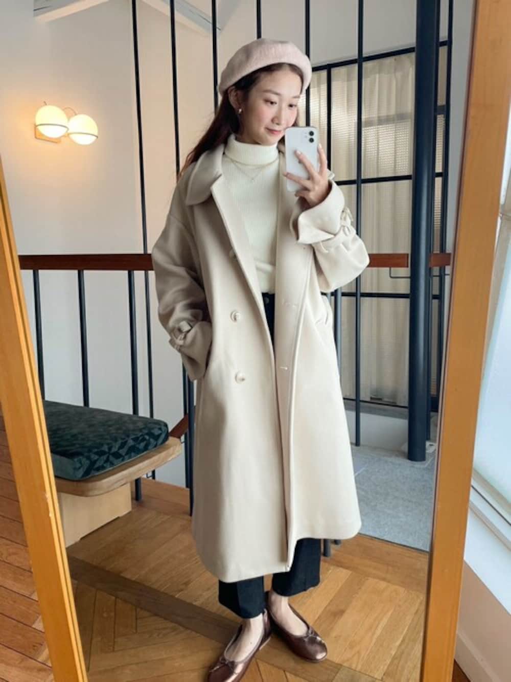 flower(flower )のステンカラーコート「パウダリーロングコート」を使ったコーディネート