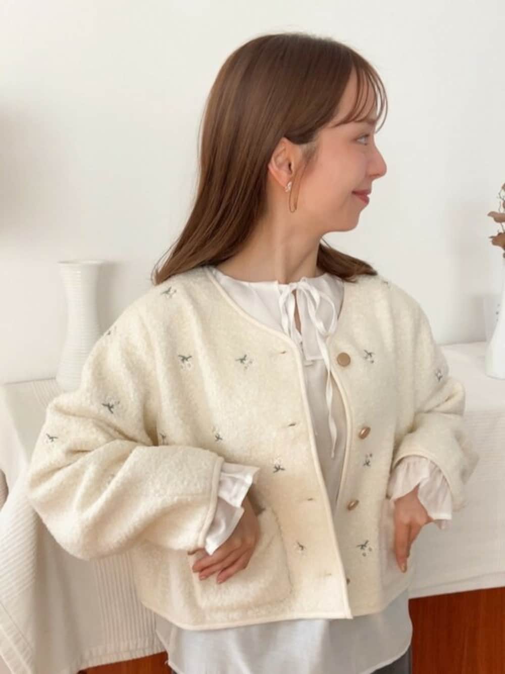 flower(flower )のノーカラージャケット「プチフラワージャケット」を使ったコーディネート