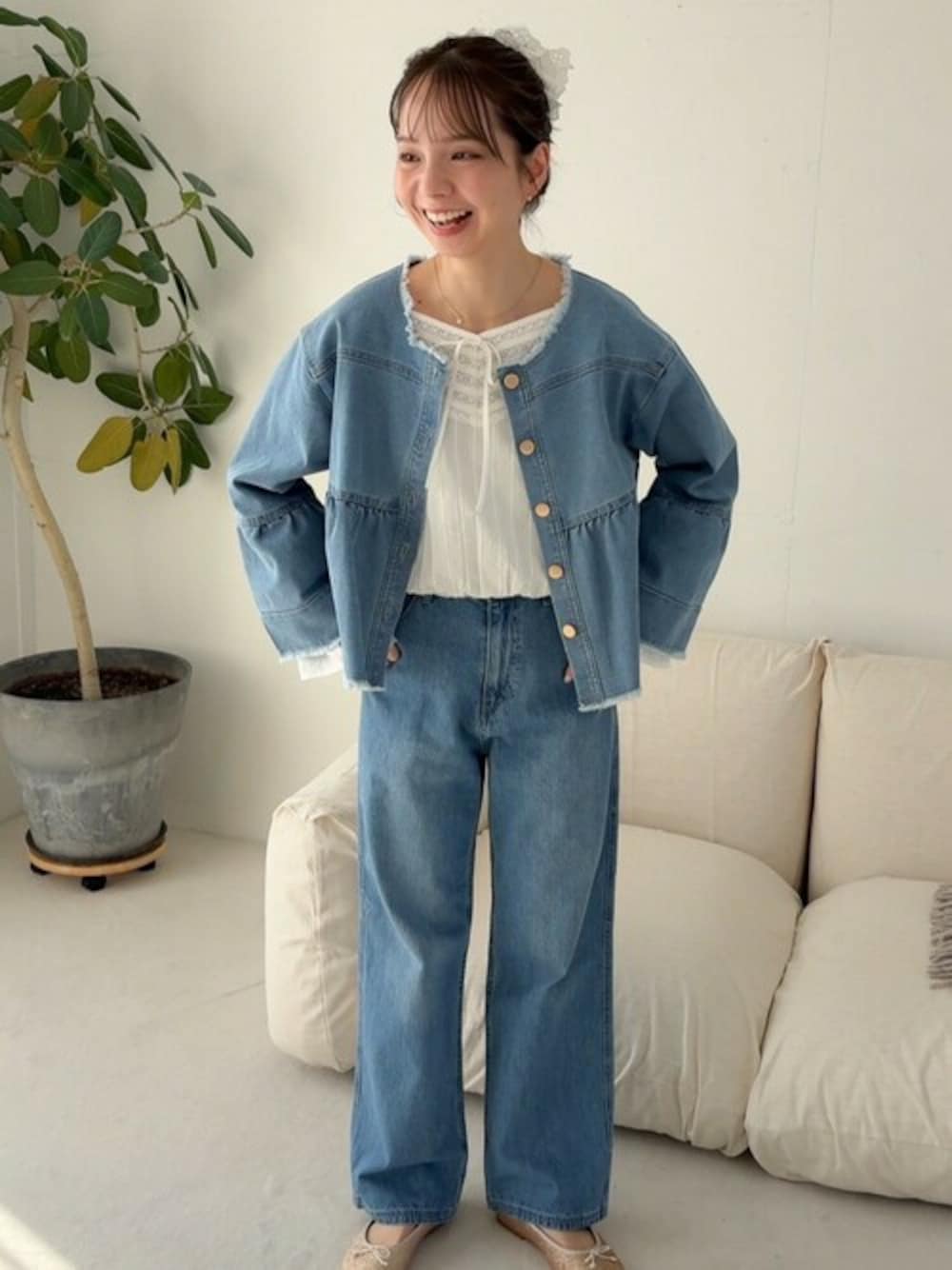 flower(flower )のノーカラージャケット「デニムフレアジャケット」を使ったコーディネート