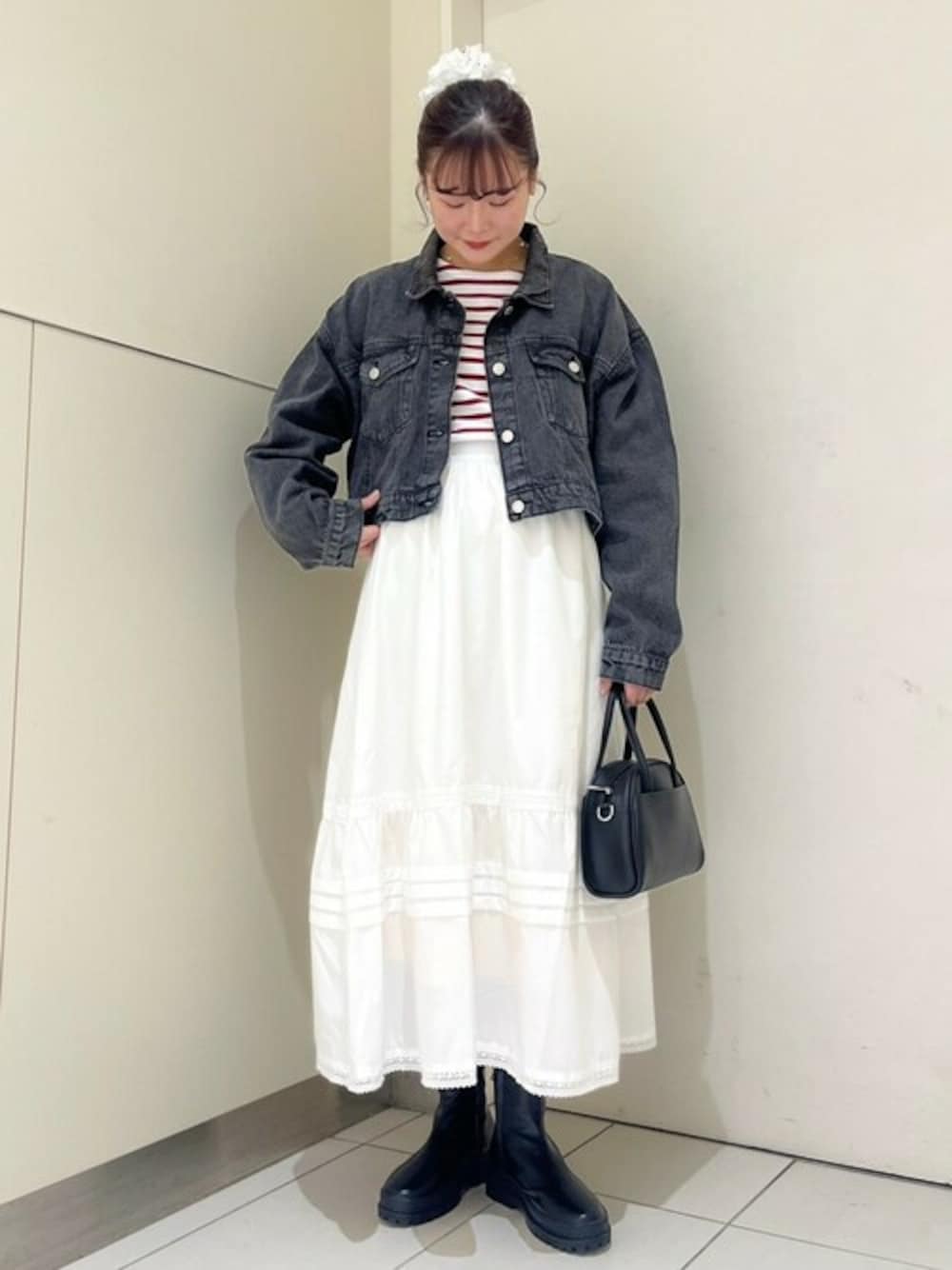 flower(flower )のデニムジャケット「ショートデニムジャケット」を使ったコーディネート