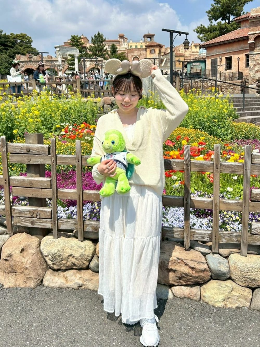 ホワイト系のワンピースを着用したレディースの春コーディネートの1枚目の写真