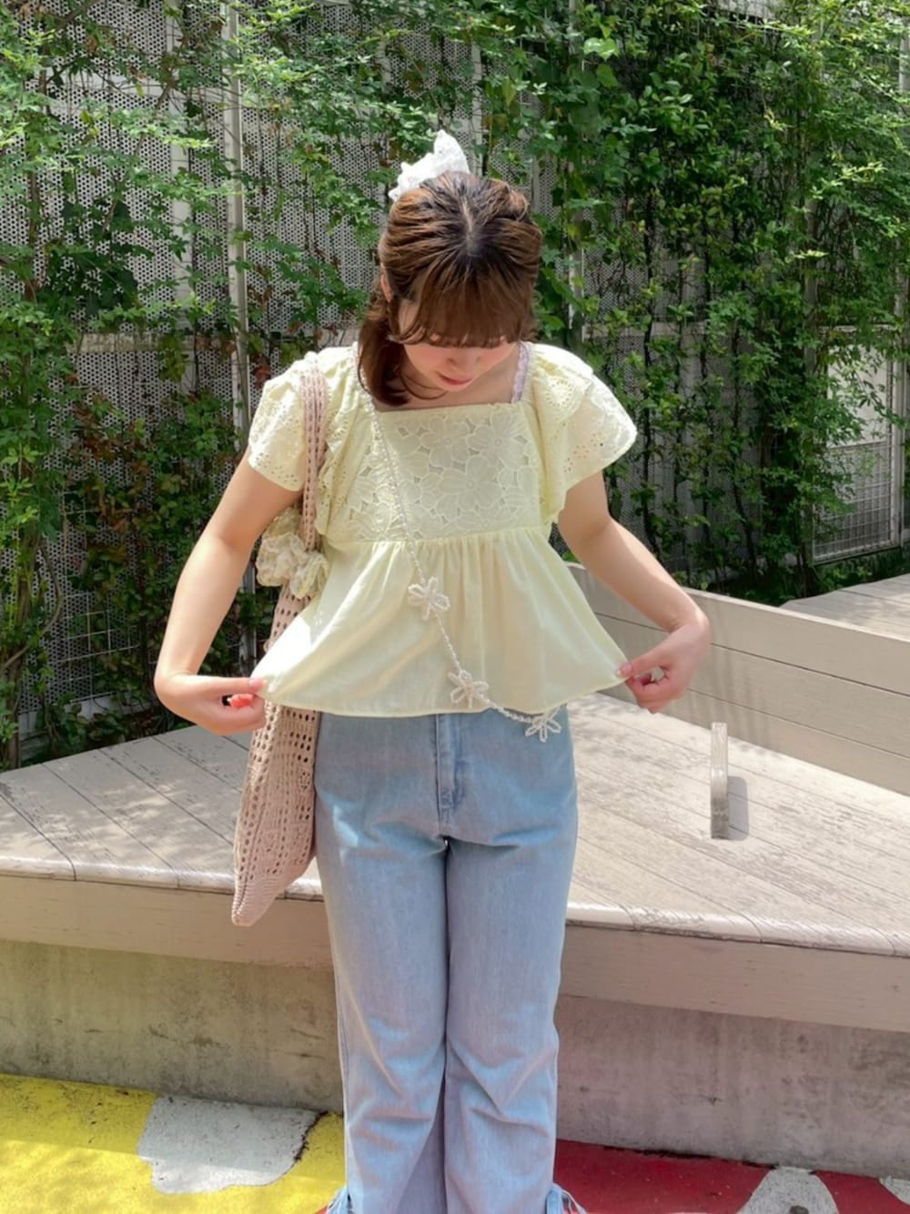 flower(flower )のデニムパンツ「リボンバギーパンツ」を使ったコーディネート