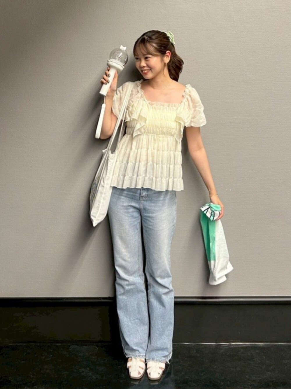 -- sheer papillon blouse4 -- ⚑ サイズ感・着心地 ゴムがきつすぎなくて着心地抜群! ノースリタイプのブラウスだけど、 肩周りはちゃんと隠してくれる袖が嬉しい♡ どんな骨格の方でも似合いそう〜 ⚑ Comment デコルテはちゃんと開くのに ふわっとした生地感が可愛らしくて、 骨ストでも着やすいフェミニンさ♡ デニム合わせでヘルシーに着るのが 夏らしくてお気に入りです! ⚘ instagram ⚘ flower official @flower_web flower shinjuku @flower_shinjuku