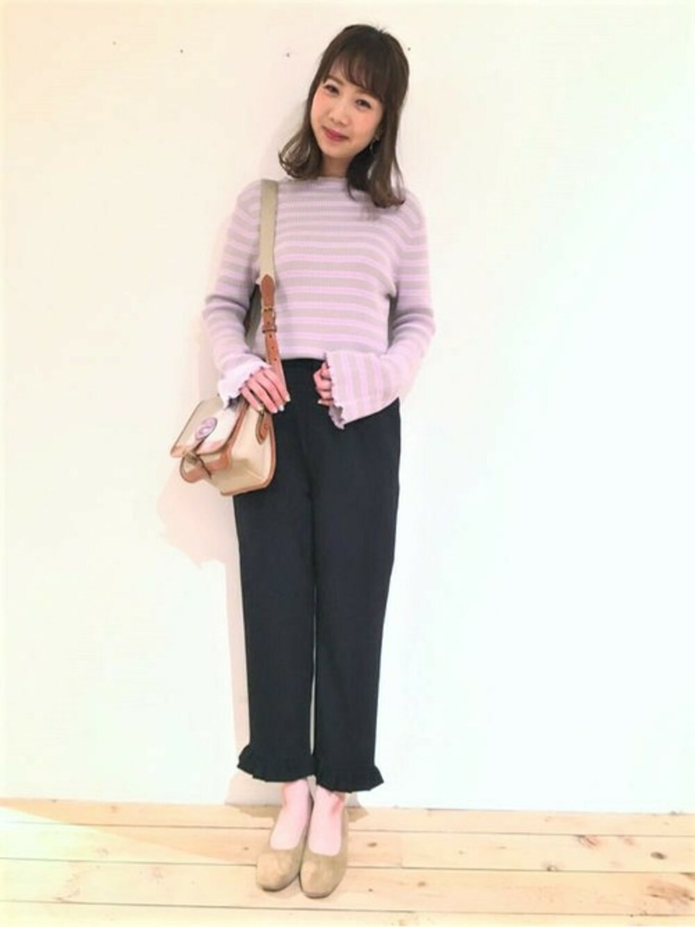 flower(flower )のTシャツ/カットソー「frill multi border~フリルマルチボーダー」を使ったコーディネート