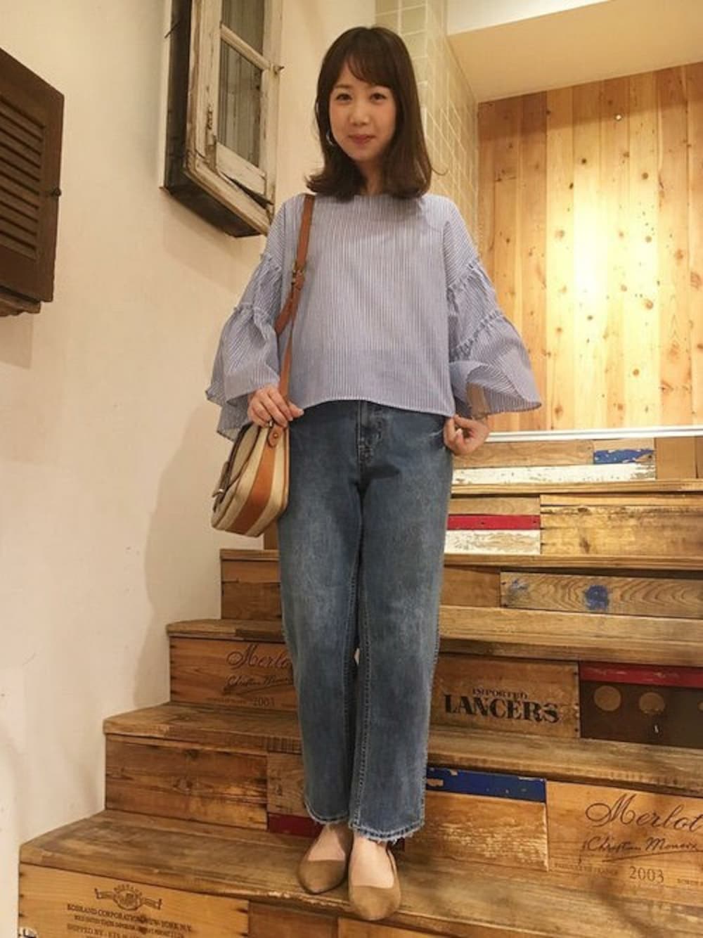 flower(flower )のシャツ/ブラウス「stripe frill blouse ~ストライプフリルブラウス」を使ったコーディネート