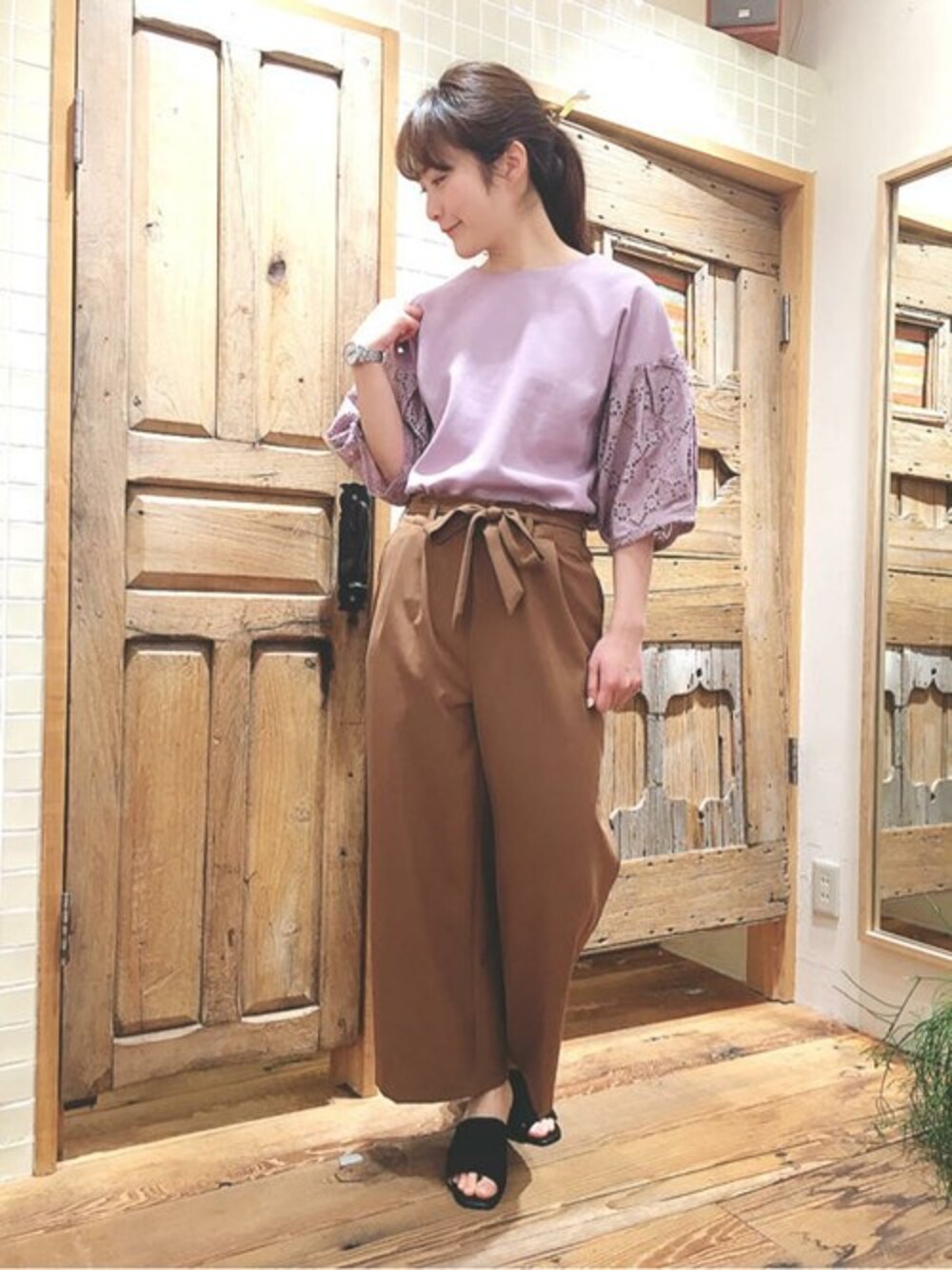 flower(flower )のTシャツ/カットソー「cutwork balloon top~カットワークバルーントップ」を使ったコーディネート
