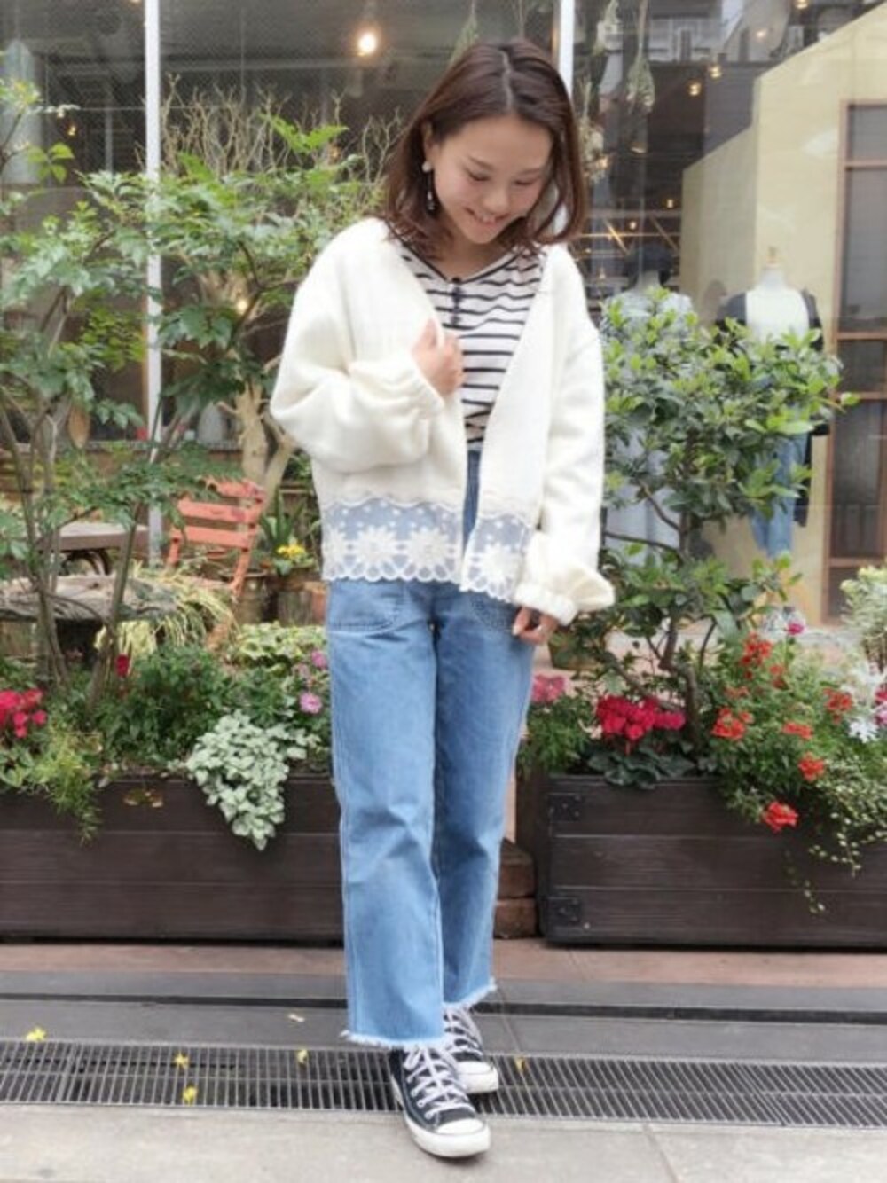 flower(flower )のカーディガン/ボレロ「lace mix cardigan ~レースミックスカーディガン」を使ったコーディネート